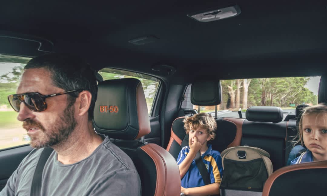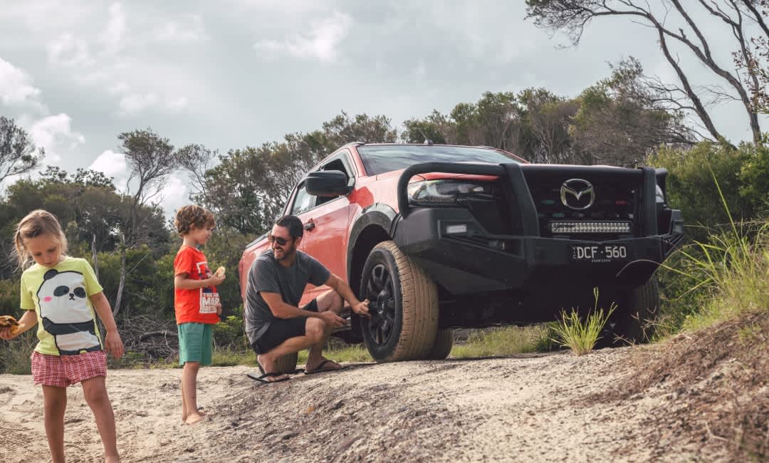 We only have one worry, which is to say that we’re not particularly set up for beach driving. Our BT-50 is on stock rubber, for a start, which keeps things nice and quiet on the tarmac, and helps our laden freeway economy to around 9L/100km. We have neither rescue boards nor a support vehicle. The children are prepared, though, Nintendo Switches topped up via the rear-seat USB-C port, Twistie dust gradually coating their electronics.