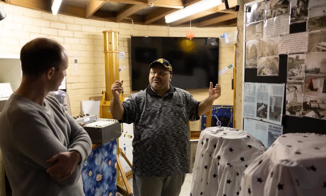 MBO President Anthony Ferriere is on hand to meet us and show us the facility, while Jacquie Milner will operate the telescope. The MBO’s origins are in the late-1960s when Monash University purchased a 40cm telescope (the dimension of the mirror, not the telescope itself) and, following its restoration, looked for a darker site to house it than the suburban university grounds.